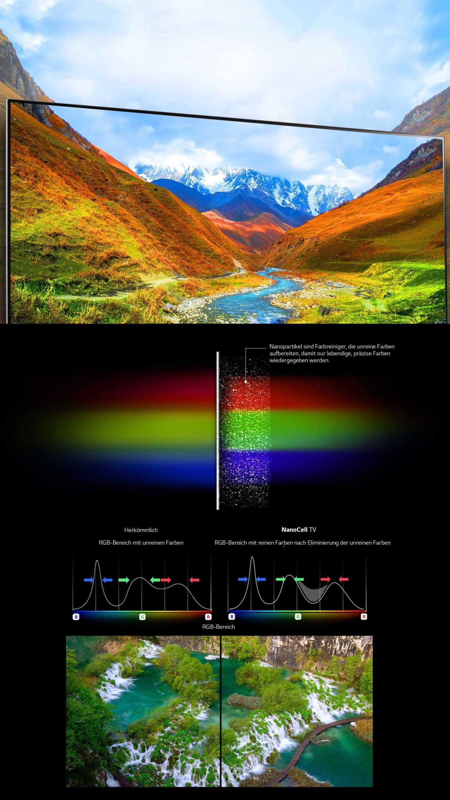 Dank der LG-NanoCell-Technologie werden durch das Aufbringen von ungefähr 1 nm an Nanopartikeln Farben klar und